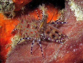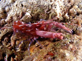 speckling. The Saron Shrimp is nocturnal, and at night, the color
